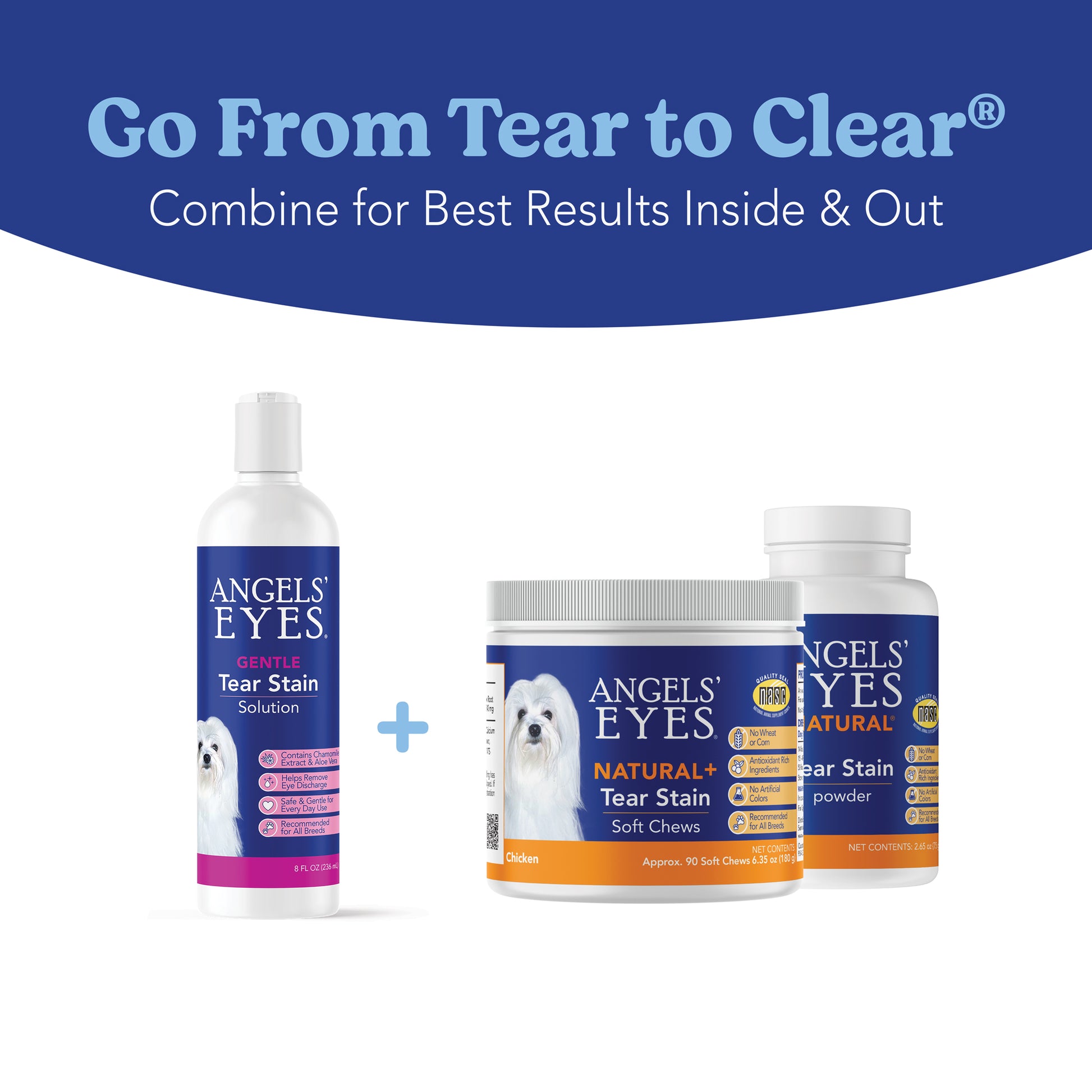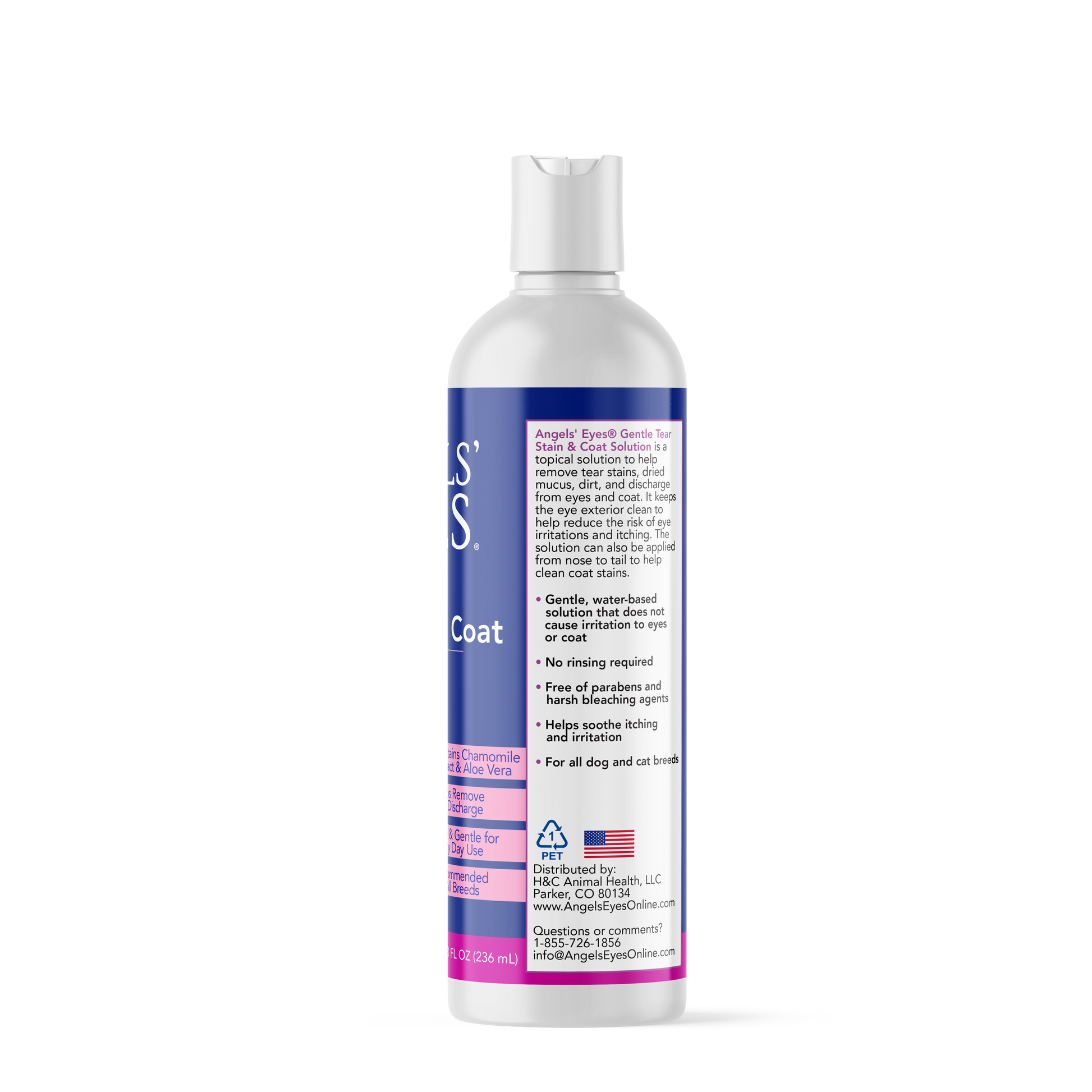 Safe and gentle, Angels’ Eyes Tear Stain & Coat Solution helps manage daily eye discharge, keeping the fur and eye area clean so your best friend can look good and feel good.