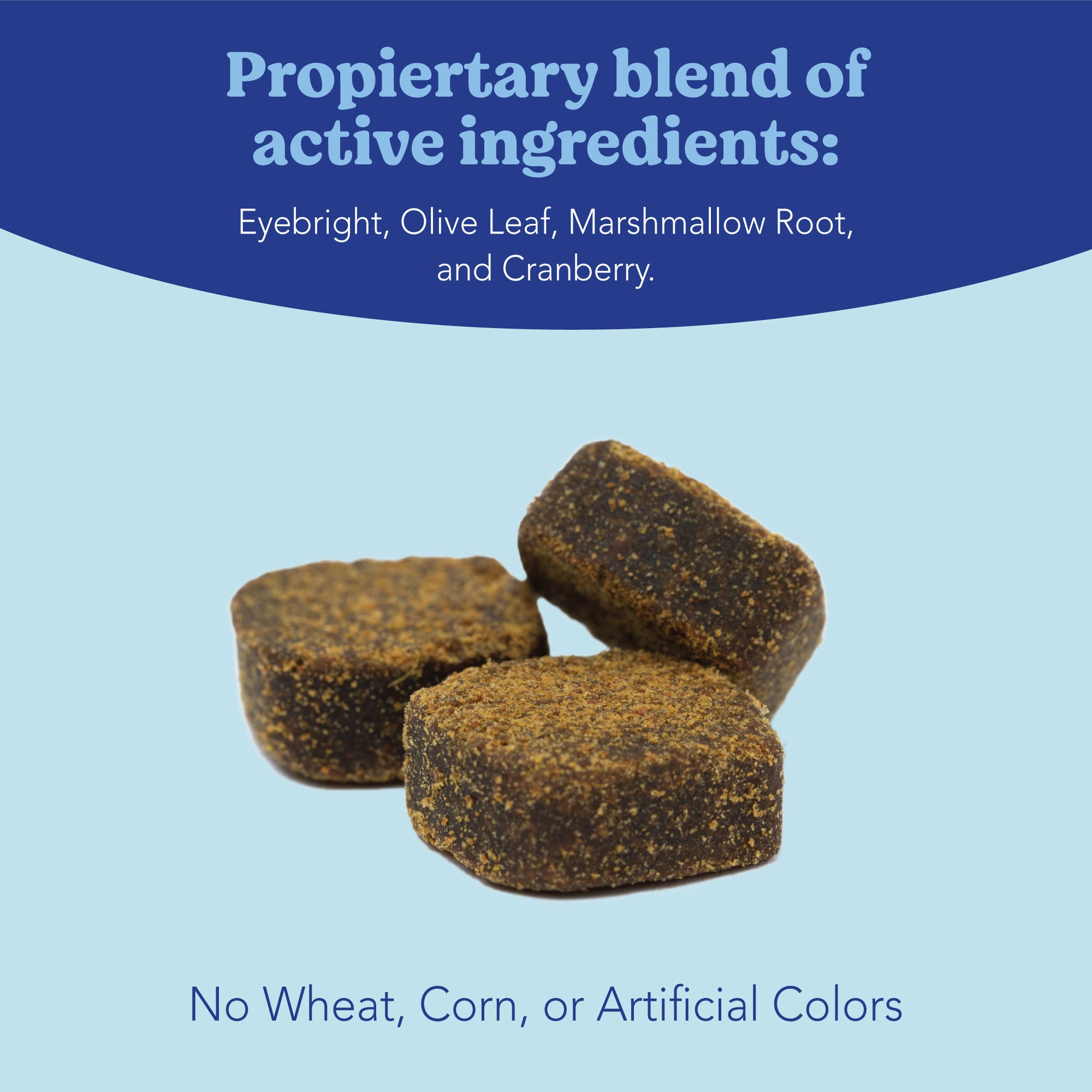 WIPES INGREDIENTS: Chamomile Extract and Aloe Vera help soothe irritated areas. Requires no rinsing. Combine with a Chew or Powder as part of a daily regimen.